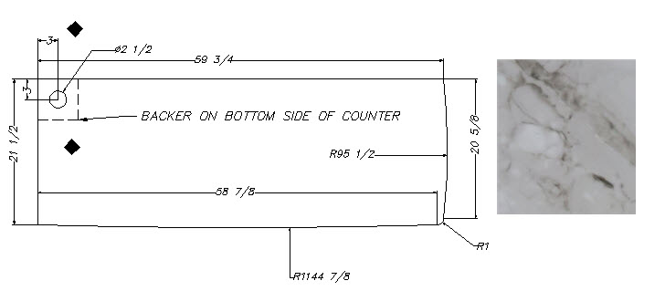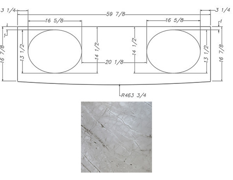 Countertop - Lav Top - AS3172/AE3173 - 17 7/8" x 59 7/8" - w/2 Sink Cutouts - C2 - No Buildup - Baha Quartz