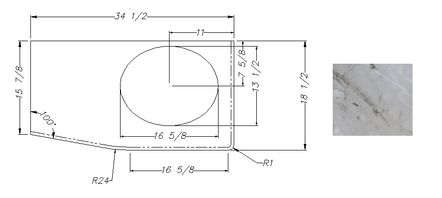 Countertop - Lav Top - 1 1/4" x 18 1/2" x 34 1/2" - C2 - WW01 - w/Buildup - Baha Quartz-NG - 130-2023