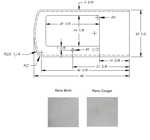 Countertop - Sink Base Top - 27SGS - 1 1/4" x 22 1/2" x 46" - Pressed - MDF - C2 - E-792 8539600 - Reno Cougar