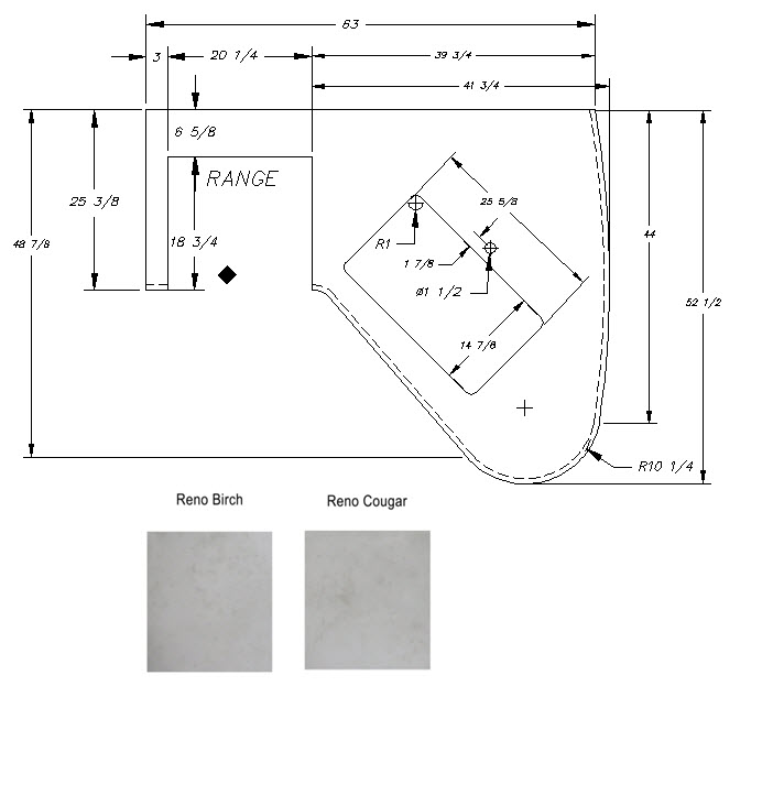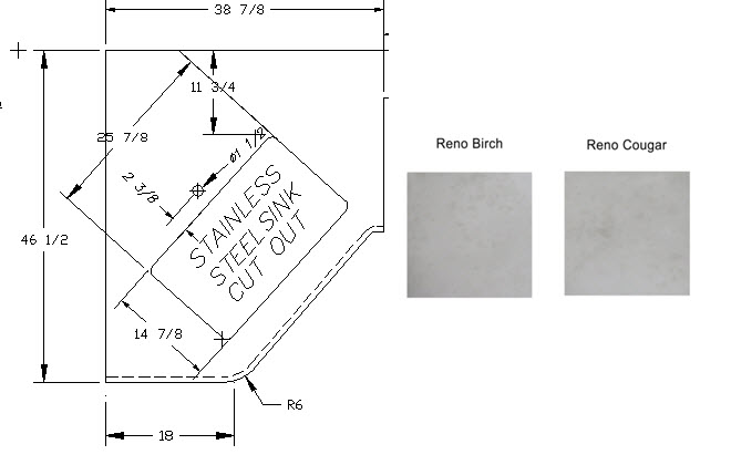 Countertop - Kitchen Top (A) - 26RBS - 1 1/4" x 39" x 49" - Pressed - MDF - C2 - E-792 8539600 - Reno Cougar