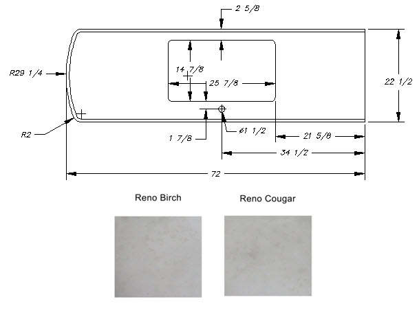 Countertop - Kitchen Top - 34TSB - 1 1/4" x 22 1/2" x 72" - Pressed - MDF - C2 - E-792 8539600 - Reno Cougar