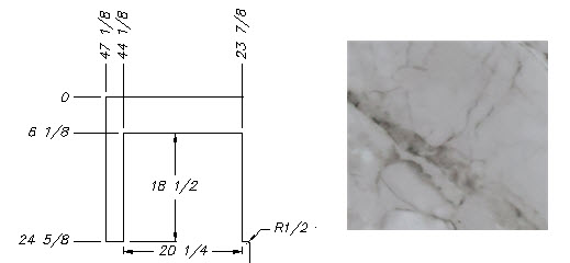 Countertop - Range Arm and Back - 23 1/4" x 24 5/8" - C2 - w/Buildup - Baha Quartz