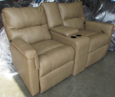 Chair - Theater Seating - 64" - Brugatti - Beckham Tan - 700 Chocolate Topstitch